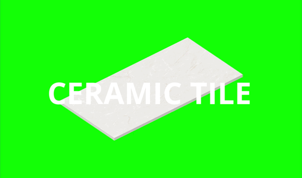 Mine clays and minerals ︎︎︎ blend into a fine powder and mix to form clay slurry ︎︎︎ press into tile shape ︎︎︎ glaze (optional) ︎︎︎ fire in kiln at temperatures around 2000°F (1100°C) ︎︎︎ stack, pack, and ship